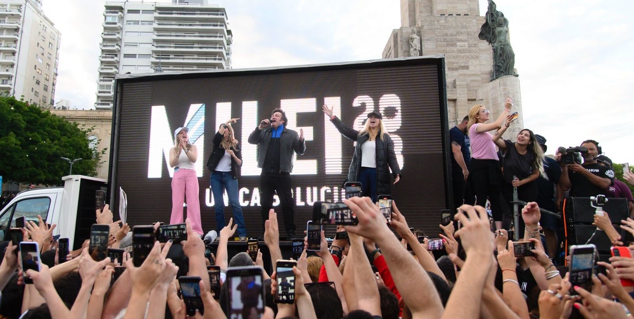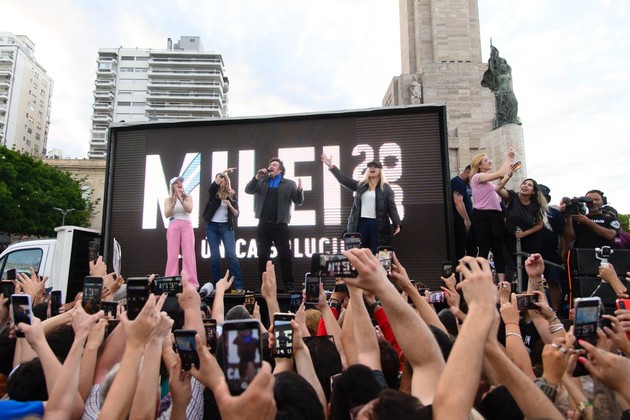 Javier Milei habló a metros del Monumento Nacional a la Bandera en Rosario. Crédito: Marcelo Manera