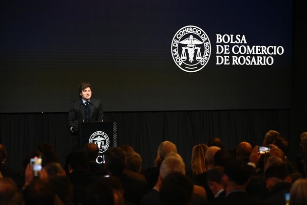 Ante las casi mil personas que asistieron al acto en la Bolsa de Comercio de Rosario, el presidente Javier Milei brindó un discurso destinado a explicar a través de 4 argumentos los motivos por los que vetará la ley de movilidad jubilatoria que sancionó este último jueves el Congreso.