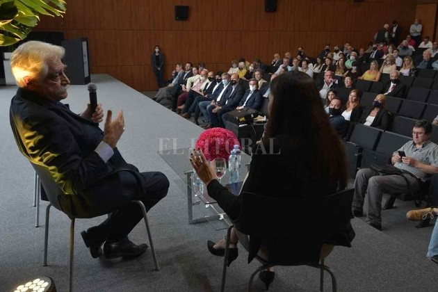 En la previa a la charla, incluida en el programa de ADER, Asís comparte con su eventual compañera de trabajo, Lía Masjoan, una charla amena y, como caballero, aclara; "no quiero hablar antes, en un rato me van a escuchar, quiero honrar el evento y a Lía. Luego hablamos".