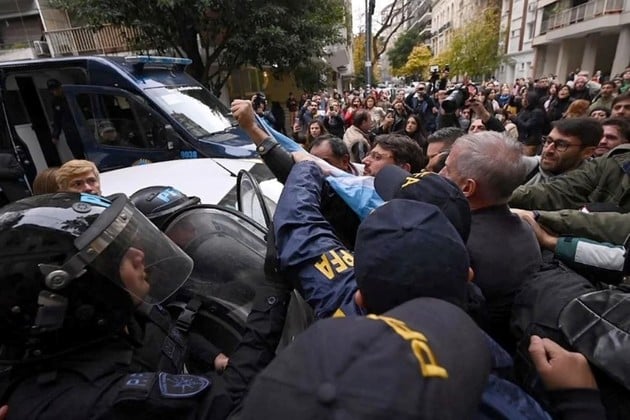 Durante la noche, cientos de personas se manifestaron frente a la Superintendencia de Investigaciones Federales en Villa Riachuelo para exigir su liberación. Entre los presentes estuvieron los diputados Itai Hagman, Natalia Zaracho, Horacio Pietragalla y Leandro Santoro, además de figuras como Federico Fagioli, Juan Manuel Valdez, Ángela Lerena y Alejandro Bercovich.