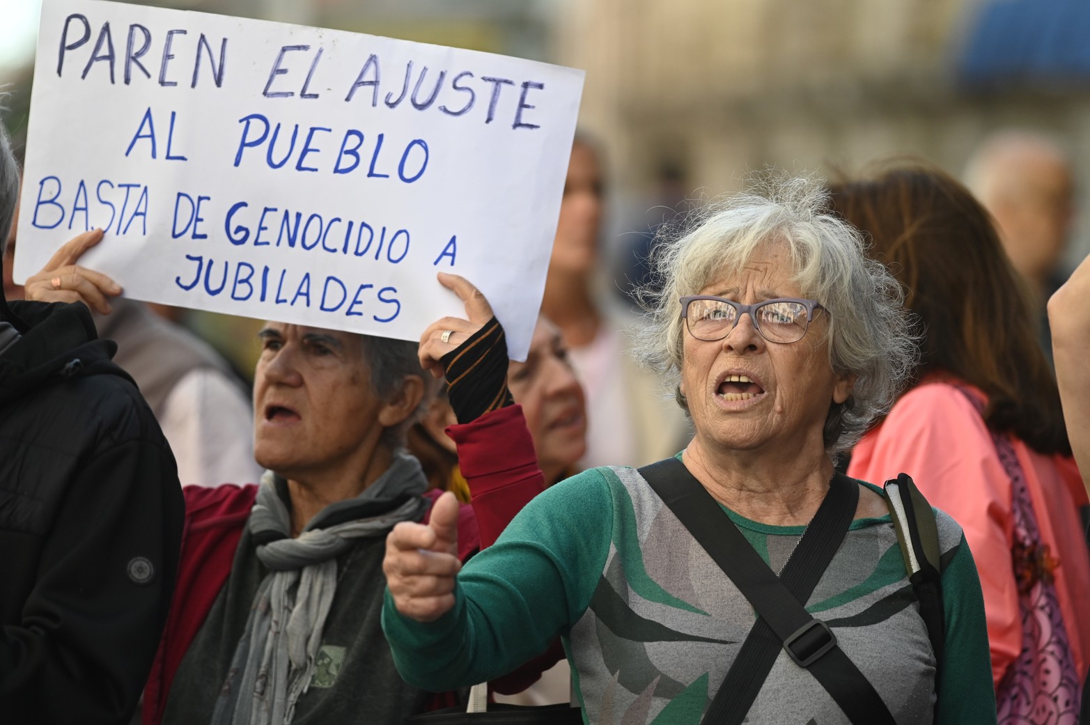 1 / 10 Los jubilados concretaron la primera manifestación frente a Anses bajo el lema: marcha de los banquitos. Reclaman el aumento de sus haberes jubilatorios. Según datos el 44 por ciento del ajuste fiscal salieron del recorte a los jubilados. Foto: Mauricio Garín
