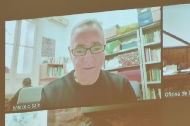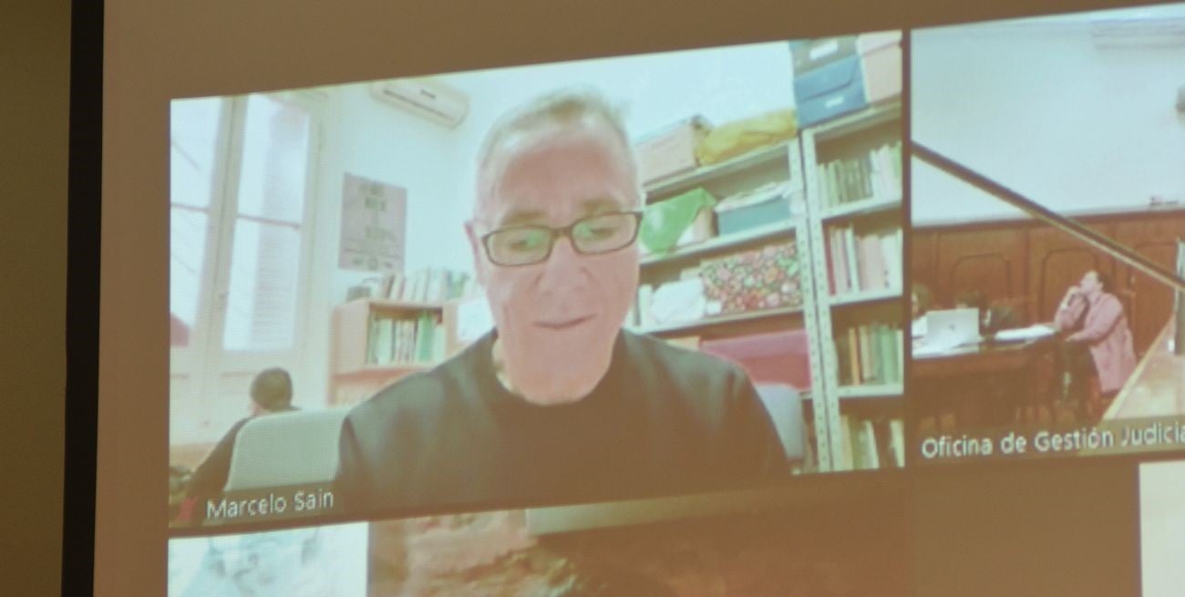 Juez, fiscales y querellantes participaron de modo presencial en la audiencia que se realizó en Tribunales. Sain y su abogado lo hicieron vía zoom. El ex ministro se permitió tomar mates y hasta comer un sandwich frente a la pantalla.