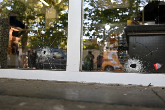 El frente de un supermercado que pertenece a la familia paterna de Antonela Roccuzzo, la esposa de Lionel Messi, fue baleado a la madrugada. Crédito: Marcelo Manera