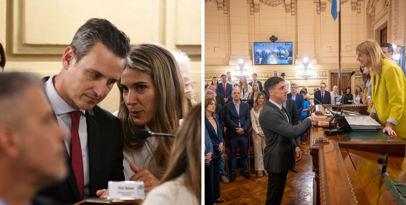 Los momentos en que juraron Francisco Paco Garibaldi y Ciro Seisas, electos por Unidos para Cambiar Santa Fe, fueron particularmente celebrados con aplausos. El "local" socialista, ex concejal de la capital provincial y el "visitante" de Creo, ex edil de Rosario -respectivamente- estuvieron acompañados por sus parejas, con quienes tuvieron gestos de cariño que las barras advirtieron, al igual que los invitados que desde el hall central de la Legislatura siguieron por pantalla el acto. Los debutantes de las dos ciudades más pobladas de la Provincia van a integrar un interbloque del oficialismo de 14 integrantes, encabezado por el jefe del mayoritario bloque radical, Rodrigo Borla (UCR-San Justo).
