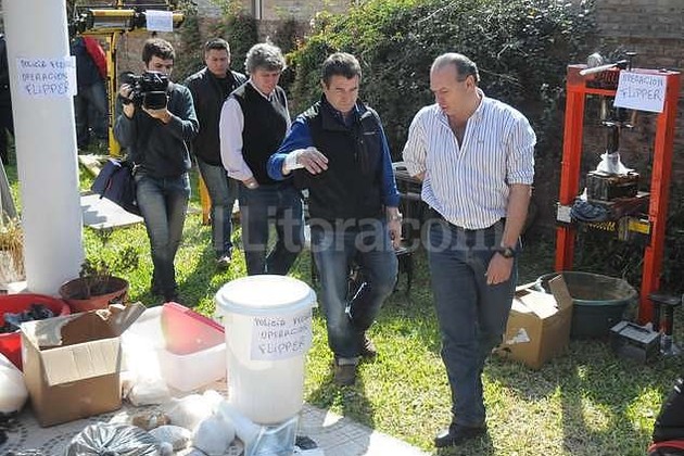 Otros allanamientos A la par del operativo en el chalet de Funes, la Policía Federal realizó 14 allanamientos en Rosario, Buenos Aires y el conurbano que arrojaron la detención de 12 personas además del secuestro de más de 2 mil litros de precursores químicos para la elaboración de la droga, once vehículos y dinero en efectivo. En Las Achiras 2528, encontraron 69 ladrillos empaquetados de lo que se denomina pasta base, 26 bidones con precursores químicos que sumaban más de dos mil litros y que habían sido comprados en Buenos Aires un día antes. Además, 40 bolsas azules que contenían cocaína procesada y además se podían ver varias bolsas de supermercado y bolsones llenos de cocaína. También hallaron una lámpara secadora de droga de grandes dimensiones, dos prensas hidráulicas para compactar, un secarropas, una bandeja enorme de secado, balanzas de precisión y rollos de nylon para armar los paquetes. También encontraron dinero en efectivo entre pesos y moneda extranjera. “Dejamos de contar en los 12 millones de dólares, pero todavía falta”, dijo Berni ante los medios. “Esta investigación la iniciamos en marzo pasado con el fiscal Federal, Patricio Murray, y con el personal de la superintendencia de Drogas Peligrosas, a raíz del desprendimiento de otra investigación menor por venta de droga en Rosario”, explicó el funcionario nacional, quien agregó: “Estábamos convencidos de que había que investigar porque sabíamos que acá en Rosario existía una gran producción y transformación de cocaína en pasta base para su posterior comercialización”. “Tenemos detenida a la banda completa, la que creemos, era el corazón sobre la cual giraba el problema del narcotráfico en Rosario”, sostuvo y aclaró que “no es frecuente” que una misma organización “centralice todo en un solo lugar”.