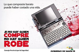 Puntualizó que junto con la Secretaría de Comunicación Social se elaboró para la campaña “una publicidad que tiene formato para la TV, la radio y medios gráficos”, con elementos “muy contundentes” que “intentan conmover y llevar a la reflexión a toda la sociedad respecto de como la compra de elementos robados puede tener detrás de sí a alguna persona que haya sido lesionada o alguna vida que se ha perdido en hechos que muchas veces conllevan alta violencia”.