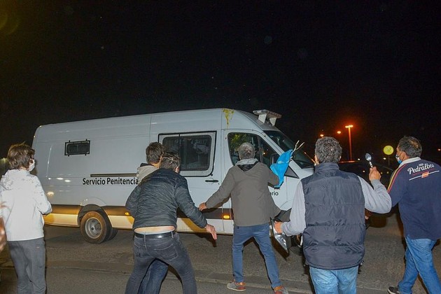 Finalmente, frustradas las intenciones de ingresar por la entrada principal y por otra de servicio, el utilitario con Báez se retiró. Presuntamente iba a ser llevado nuevamente a la cárcel de Ezeiza hasta que se decidan medidas para que se cumpla efectivamente y sin inconvenientes la resolución judicial y se preserve la integridad de Báez.