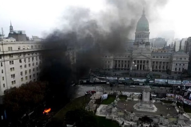 “Con una feroz represión a la gran cantidad de trabajadores que hoy se movilizaron a pesar de las conducciones”, añadió. “Abajo todo el plan de Milei”, prosiguió Del Caño, también diputado nacional por el Frente de Izquierda.