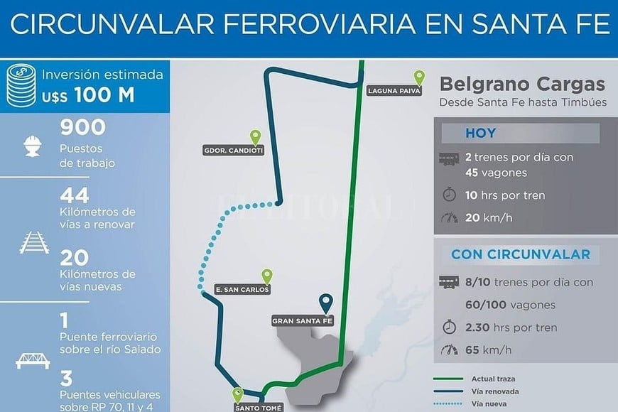 La obra beneficiará a toda el área metropolitana del Gran Santa Fe ya que los trenes de carga dejarán de ingresar a la ciudad. Este miércoles se lanza la licitación de la obra, que generará 900 empleos.