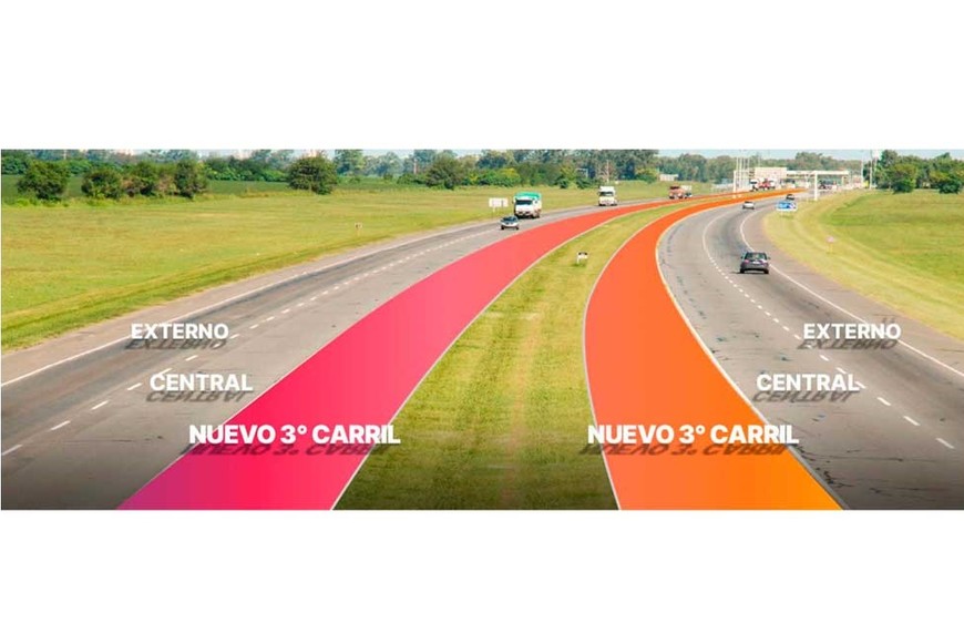 La obra agregará un tercer carril de 3,65 metros de ancho sobre la banquina interna (sobre la mano izquierda) en ambas manos de circulación, que se acoplará a los 7,30 metros existentes en cada sentido. A su vez, ambos carriles existentes de la autopista (tanto el carril externo como el carril central), en este tramo de 16,2 km, serán repavimentados.