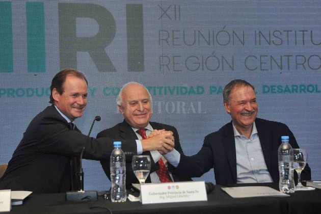 El gobernador de Santa Fe, Miguel Lifschitz, junto sus pares de Entre Ríos, Gustavo Bordet, y de Córdoba, Juan Schiaretti, y al secretario general del Consejo Federal de Inversiones (CFI), Juan José Ciásera, abordaron la “Integración productiva y competitividad para el desarrollo regional” en la XII Reunión Institucional de la Región Centro, realizada entre este lunes y martes en la ciudad de Santa Fe.