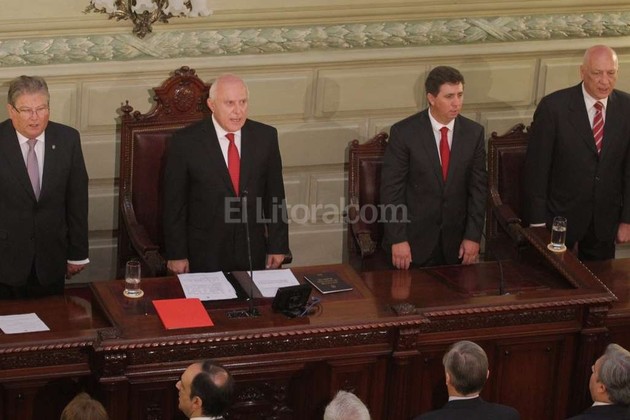 El gobernador electo, Miguel Lifschitz, en su discurso ante la Asamblea Legislativa, hizo un llamado a la responsabilidad de todos los integrantes del Poder Judicial, y también a los de los otros poderes del Estado: “tenemos que trabajar de manera conjunta. Vamos a convocar a los legisladores para repensar lo que tiene que ver con la justicia penal para avanzar y que se pongan en la misma sintonía que las demandas de la sociedad”.