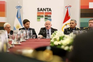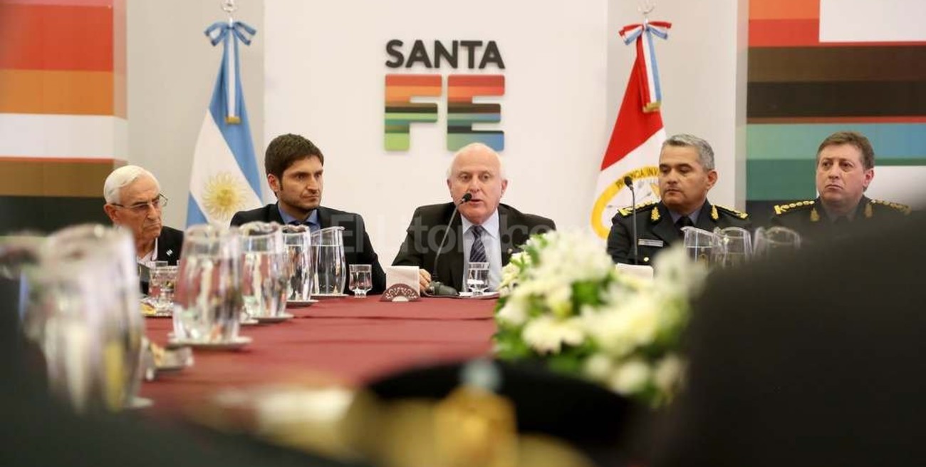 El gobernador de Santa Fe, Miguel Lifschitz, junto al ministro de Seguridad, Maximiliano Pullaro, se reunieron este viernes en Rosario, con la plana mayor de la policía de la provincia de Santa Fe, con el objetivo de “impartir directivas” de trabajo, y conocer las “necesidades y demandas” de los uniformados.
