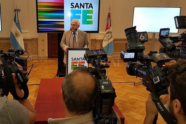 El gobernador de la provincia de Santa Fe, Miguel Lifschitz, brindó una conferencia de prensa este viernes en el Salón Blanco de la sede de Gobierno en la ciudad de Rosario y se refirió a varios temas de agenda.