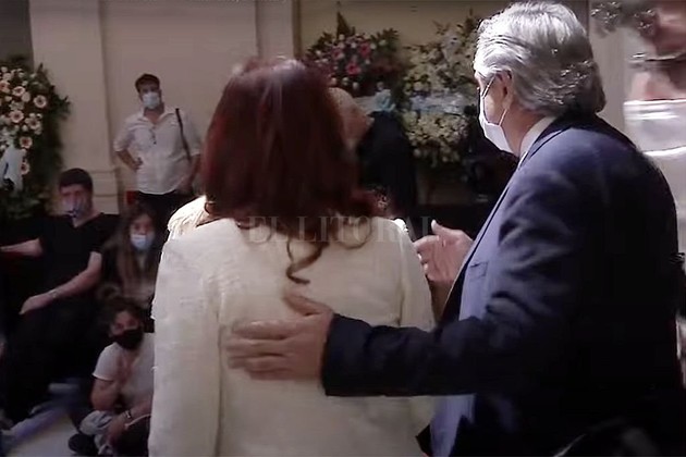 Al enterarse de que la vicepresidenta se dirigía a Balcarce 50, Fernández bajó a la capilla ardiente para recibirla junto a la ex esposa de Maradona Claudia Villafañe y las hijas del "Diez", Dalma, Giannina y Jana.
