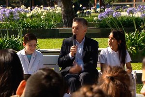 Macri decidió rendir homenaje al Día de la Democracia -que coincide con Día de los Derechos humanos declarados por las Naciones Unidas en 1948- con un encuentro con alumnos de escuelas primarias de Olivos, que se llevó a cabo en la Plaza de la República en la residencia de Olivos, junto al Intendente de Vicente López, Jorge Macri.