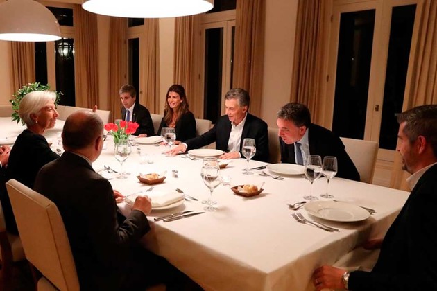 Antes de la cena, en la misma residencia presidencial, hubo una reunión bilateral entre el equipo y Dujovne y Lagarde, destaca Clarín.