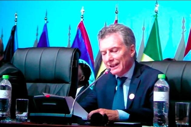 Las declaraciones que utilizó Macri en el marco de su discurso en la cumbre fueron las mismas difundidas por la Cancillería argentina minutos antes de su mensaje, en un comunicado de prensa.