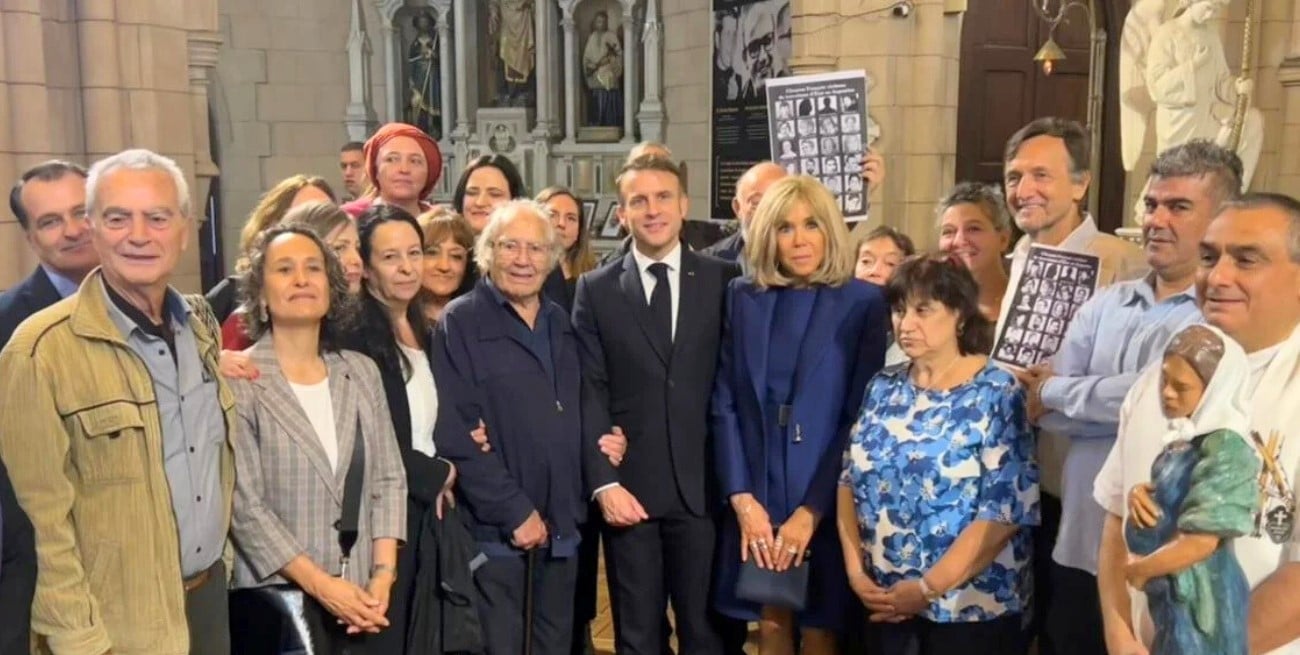 En la iglesia Macron y su esposa Brigitte Macron juntaron con los familiares de los desaparecidos franceses durante la última dictadura y los organismos de DDHH. Durante el encuentro se comprometió a transmitirle la preocupación a Milei y abogó por la verdad y la justicia.
