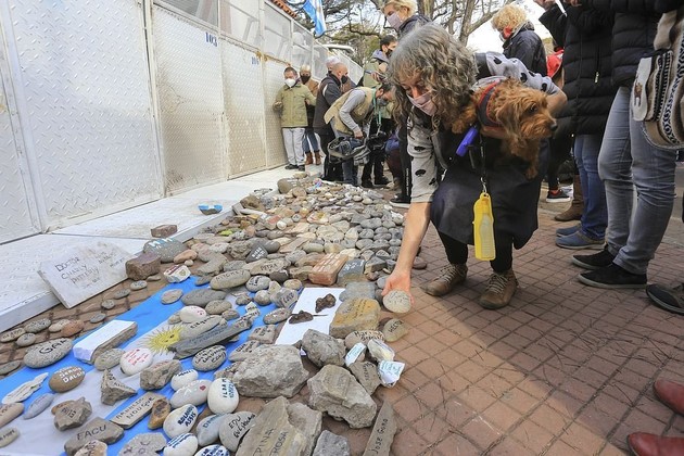 Familiares y amigos de personas que fallecieron por Covid-19 en la Argentina concretaron hoy la denominada "Marcha de las piedras", en la Casa Rosada y la Quinta de Olivos, con la que homenajearon a las víctimas y protestaron contra el Gobierno nacional por el manejo de la pandemia.