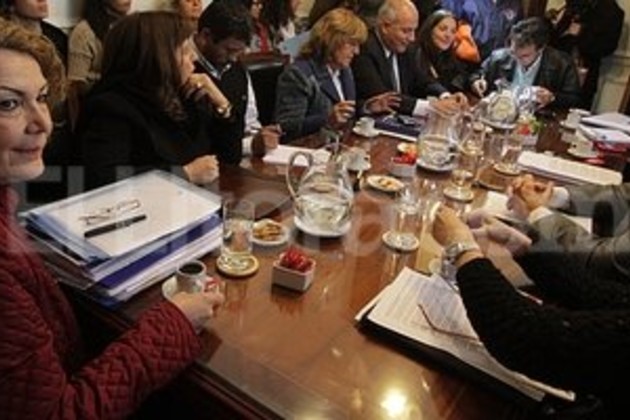 La reunión en la presidencia de la Cámara continuaba al cierre de esta edición. Foto: Guillermo Di Salvatore