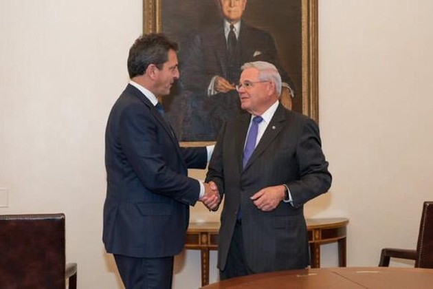 En el marco de su gira por los Estados Unidos, Sergio Massa se reunió en el Capitolio con el presidente de la Comisión de Relaciones Exteriores del Senado de Estados Unidos, Bob Menéndez, para abordar los principales temas de la agenda bilateral, tales como la lucha contra el COVID-19 y los principales desafíos de la región para superar la crisis. Luego del encuentro, Menéndez expresó su agradecimiento al presidente de la Cámara baja a través de las redes sociales y ratificó su apoyo para trabajar en el fortalecimiento de las relaciones entre ambos países.