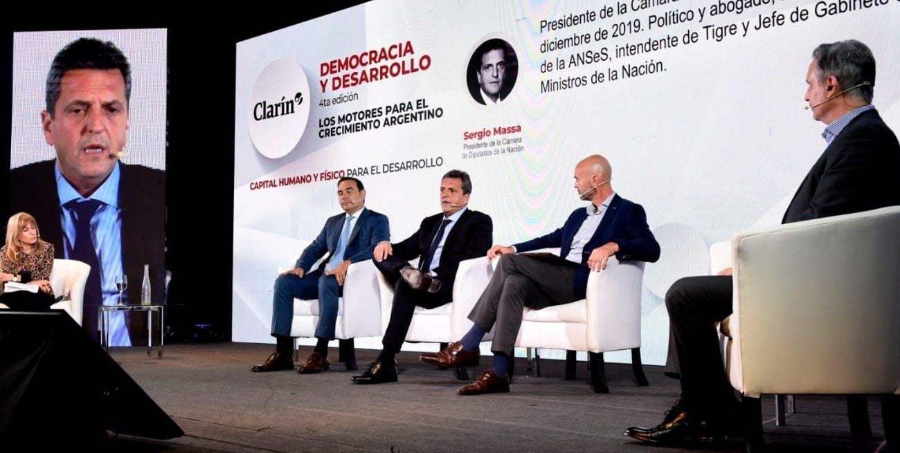 El presidente de la Cámara de Diputados, Sergio Massa, participó de la 4ta. edición del encuentro organizado por el Grupo Clarín sobre Democracia y Desarrollo. En ese contexto, instó a lograr “un acuerdo político amplio. A la Argentina se le abre una enorme oportunidad, que nos tiene que sacar del debate mediocre y llevarnos al debate del desarrollo económico argentino”, destacó.