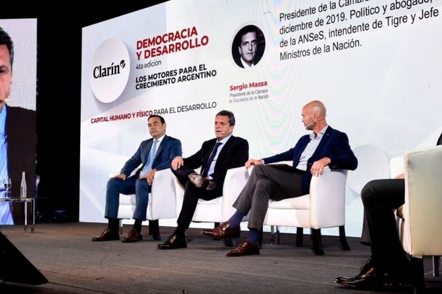 En el marco de la 4ta. edición del encuentro organizado por el Grupo Clarín sobre Democracia y Desarrollo, Sergio Massa consideró clave “sentarse a la mesa del diálogo. El ámbito está convocado dentro del Congreso, para allí establecer que, gobierne quien gobierne en Argentina, apostemos a generar riqueza para el país".