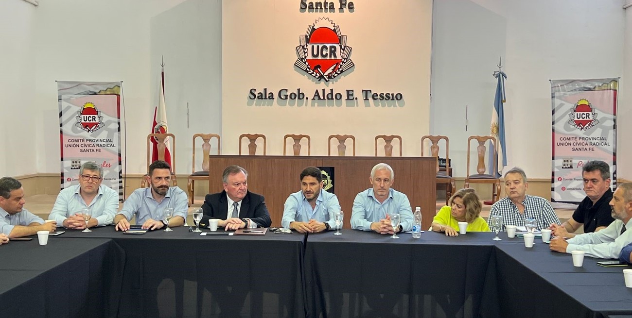 También este jueves, Pullaro se reunió en la sede del Comité Radical con representantes de todos los partidos que integran Unidos para Cambiar Santa Fe. El objetivo fue reafirmar su compromiso con dicha coalición, más allá del sismo que atraviesa Juntos por el Cambio a nivel nacional. Estuvieron, entre otros, Felipe Michlig (UCR), Cristian Cunha (PRO), Enrique Estévez (Partido Socialista, PS), Mariano Roca (Creo) y Gabriel Real (PDP).