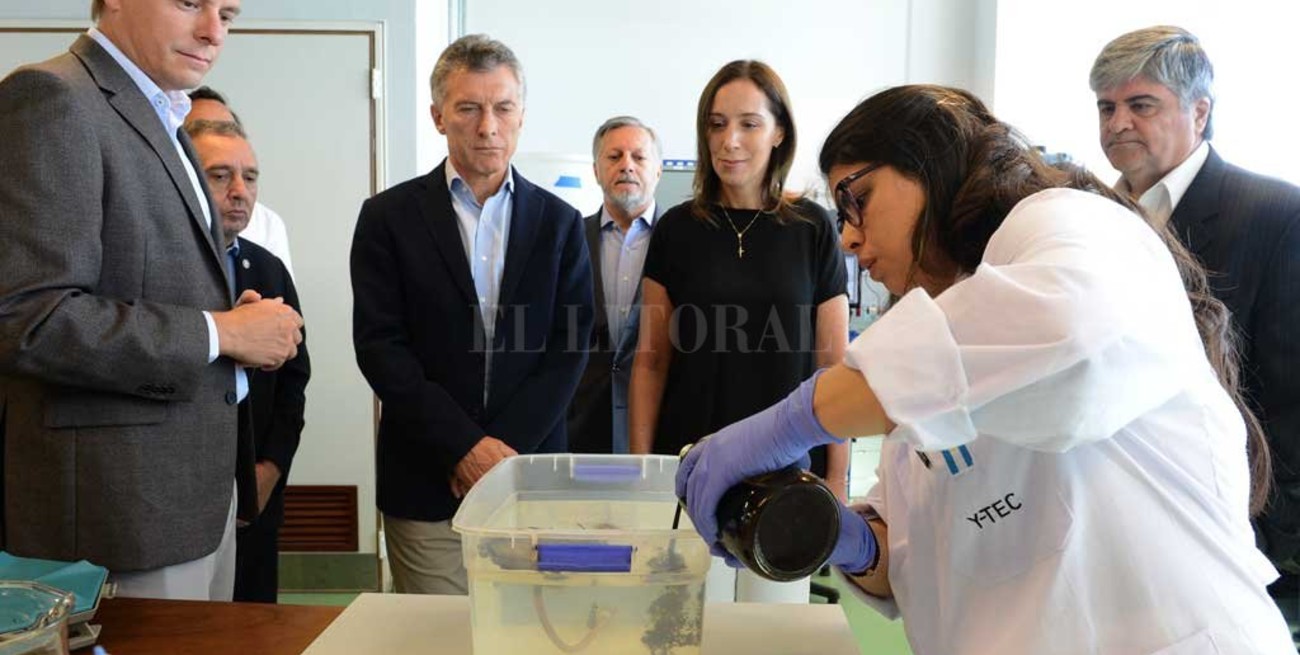 Macri y Vidal estuvieron acompañados por el intendente local, Jorge Nedela; los ministros de Ciencia, Tecnología e Innovación Productiva, Lino Barañao; y de Energía y Minería, Juan José Aranguren, y el presidente de YPF, Miguel Angel Gutiérrez, entre otros.
