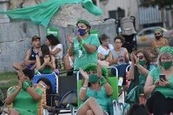 Miles de personas, en su mayoría mujeres con tapabocas y pañuelos verdes o vestimenta alusiva a la Campaña por el aborto legal, acompañaban desde las calles el desarrollo de la sesión, a través de monitores gigantes colocados en avenidas aledañas al Congreso