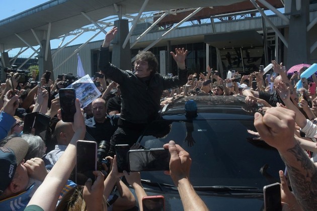 Javier Milei en su fugaz visita de campaña a la ciudad de Santa Fe semanas atrás.