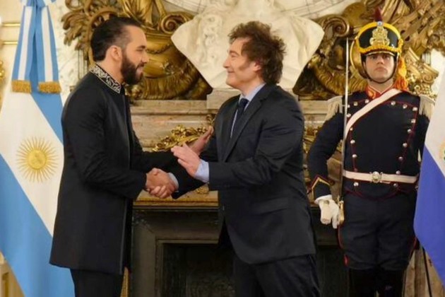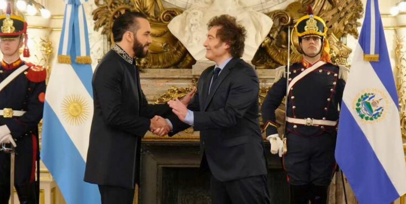 El presidente Javier Milei recibió en Casa Rosada a su par de El Salvador, Nayib Bukele, con quien mantuvo una audiencia, en la que abordaron la cooperación en temas como "energía, comercio y seguridad", entre otros.