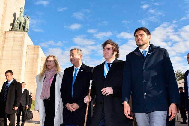 Milei y Pullaro, en la última visita del presidente a la provincia con motivo del acto por el Día de la Bandera.