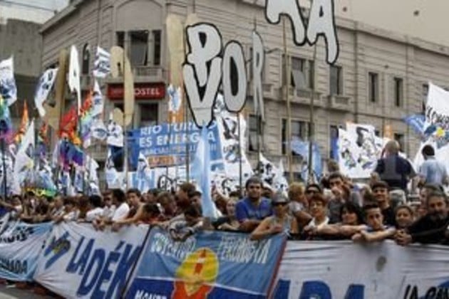Con fuerte presencia juvenil, que parece marcar el tono de la movilización, columnas de La Cámpora, Kolina, Movimiento Evita y Unidos y Organizados avanzan por los costados de Avenida de Mayo y Callao -que se encuentran valladas porque por allí ingresará la Presidenta- y calles adyacentes con las consignas "Cristina somos todos" y "Yankees ni se atrevan".