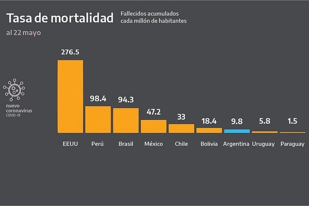 "Es necesaria una aclaración en relación a la información presentada en el día de ayer: La tasa de mortalidad está expresada por millón de habitantes, no por 100.000. Si bien las tasas de mortalidad y de incidencia son correctas, surge un error en la rotulación de cada país", dijo el Ministerio en la red Twitter.