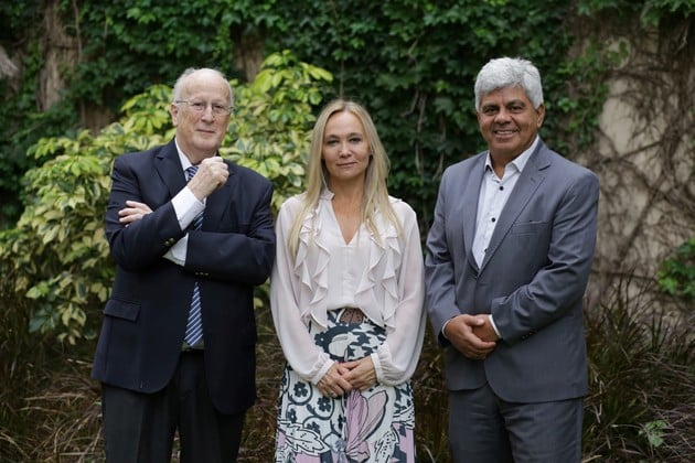 La fiscal general actual, María Cecilia Vranicich, excoltada por los dos exfucionarios que ocuparon su cargo: Julio de Olazábal (2011-2017) y Jorge Baclini (2017-2023). Crédito: MPA