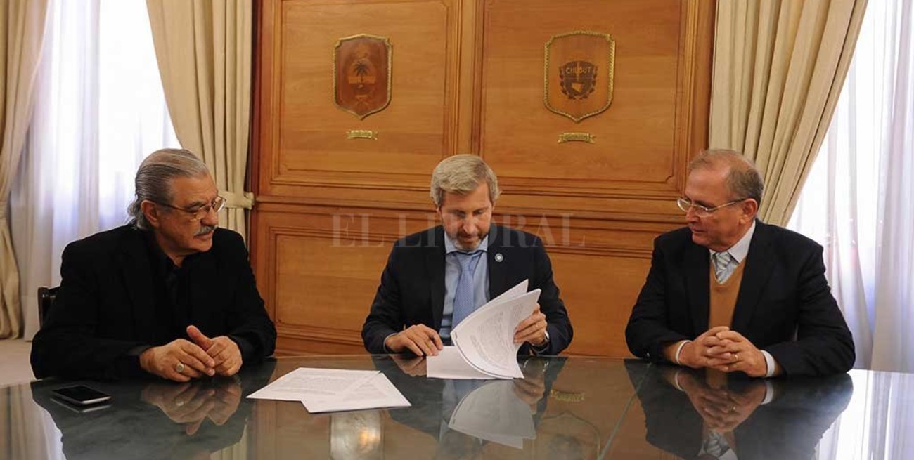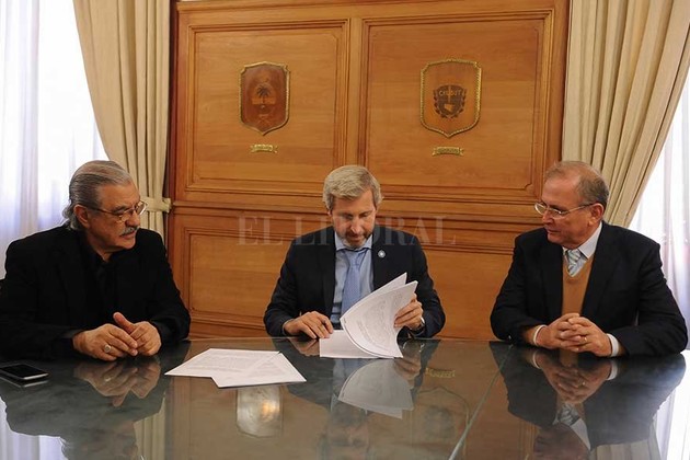El ministro del Interior, Obras Públicas y Vivienda, Rogelio Frigerio; el subsecretario de Obras Públicas de la Nación, Jorge Sábato; y el ministro de Obras Públicas de la provincia de Santa Fe, Julio Schneider, firmaron hoy un convenio para la finalización del hospital de la ciudad de Reconquista, con una inversión del gobierno nacional de cerca de 200 millones de pesos.