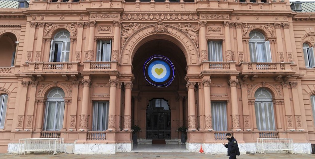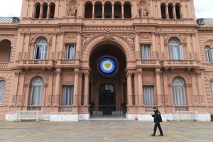 Vista de la entrada de Balcarce 50 de la Casa de Gobierno, durante el feriado patrio del dia de hoy.