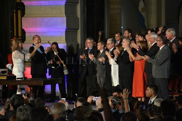 Entrada la noche de este miércoles, el gobernador Omar Perotti recibió los atributos del mando de manos de Miguel Lifschitz.
