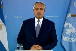 En el mensaje grabado, el mandatario invitó a "repensar una nueva arquitectura financiera internacional" para afrontar la "triple crisis de pandemia, cambio climático y deuda que golpea duramente a los países de renta media como la Argentina".