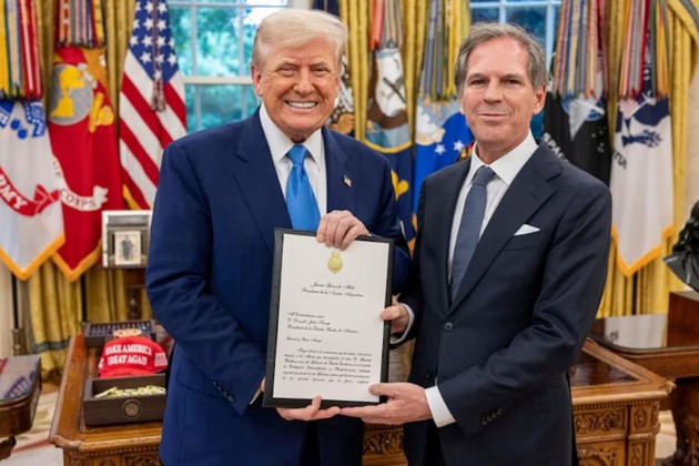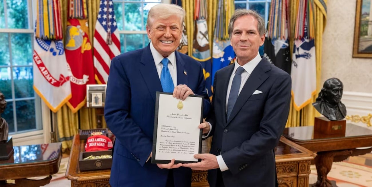 El embajador argentino en Washington, Alec Oxenford, junto al presidente de los Estados Unidos, Donald Trump.