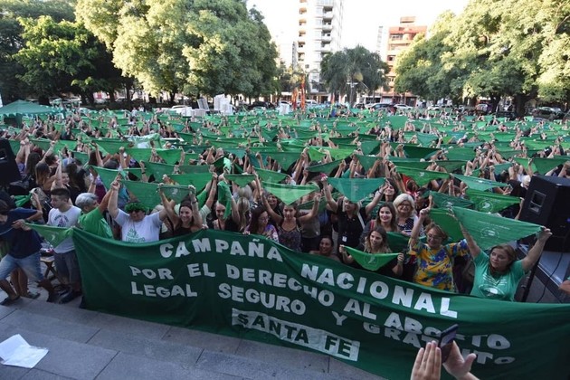 Manifestantes de la ciudad de Santa Fe se sumaron al reclamo por el aborto legal, seguro y gratuito, en el marco del "Pañuelazo Federal" que se realiza en Argentina.