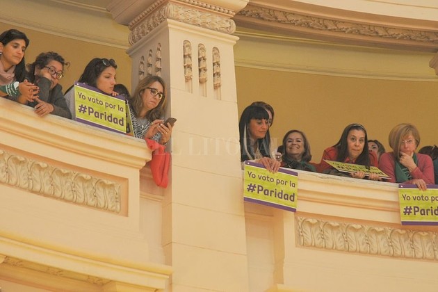 La mayor parte de la sesión la llevó el tratamiento del tema paridad seguido por mujeres militantes de diferentes partidos políticos que exigieron la aprobación, que aplaudieron los discursos y que luego celebraron con las legisladoras en el hall de la Legislatura.