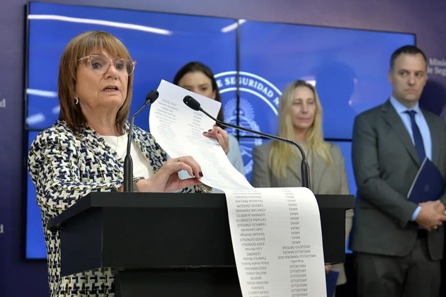 "Ningún violento, nadie que haya cometido delitos o que haya extorsionado va a poder ingresar al Mundial de Clubes", sostuvo Bullrich durante el acto, en el que hizo entrega simbólica del listado impreso a Dressel.
