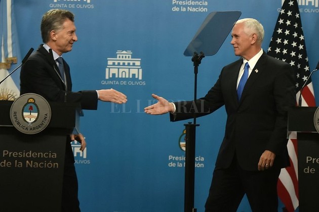 "Argentina es una inspiración en el continente y a nivel mundial. Estoy aquí para decirle en nombre del presidente (Donald) Trump que Estados Unidos está con usted", sentenció Pence, tras reunirse con el jefe de Estado y funcionarios de ambas naciones en la Residencia de Olivos.
