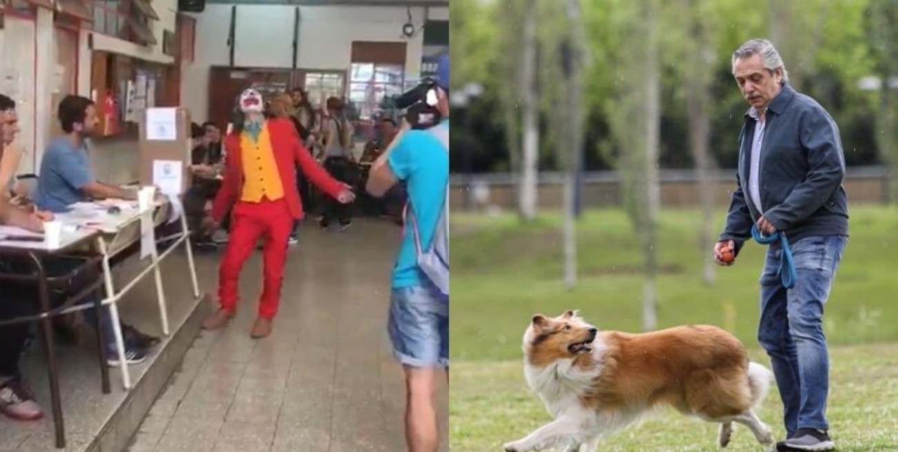Como en cada elección, este domingo no faltaron las perlitas. Entre ellas resaltaron el paseo matutino del candidato Alberto Fernández a su perro Dylan, un cabo falso con pistola de juguete y la presencia del Guasón en Lanús.