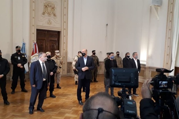 El gobernador Perotti compareció frente a los medios tras las reuniones entre fuerzas policiales y autoridades de los tres niveles del Estado. Los encuentros se dieron tras los seis homicidios producidos entre este lunes y el martes pasados en el departamento Rosario.