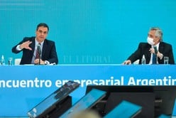 Luego de la reunión con empresarios argentinos y españoles con motivo de la visita del presidente Pedro Sánchez a la Argentina, Alberto Fernández y el mandatario europeo brindaron unas breves palabras en el Museo del Bicentenario de la Casa Rosada.