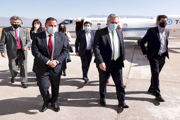 Según confirmaron a Télam, la comitiva del Presidente estaba integrada por el ministro del Interior, Eduardo de Pedro; la ministra de Desarrollo Territorial y Hábitat, María Eugenia Bielsa; el ministro de Desarrollo Social, Daniel Arroyo; el secretario General de la Presidencia Julio Vitobello; y la secretaria de Promoción Turística, Yanina Martínez.